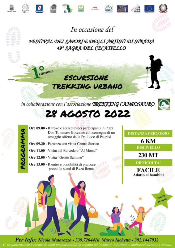 Diversi gli appuntamenti di domenica 28 agosto all’interno della kermesse culinaria: ci sarà la prima edizione del Trekking Urbano, organizzato in collaborazione con l'associazione Trekking Camposauro e poi la II° edizione del Raduni di auto e moto d’epoca in collaborazione con i club Gaves e Caudina Club Getleman Drivers. “Due manifestazioni alla scoperta del territorio attraverso modi diversi di valorizzarlo – spiega Dario Orsillo presidente della Pro Loco di Paupisi -, osservando quei piccoli dettagli che spesso sfuggono agli occhi dei visitatori, piccoli tesori nascosti e poco conosciuti della nostra meravigliosa terra.