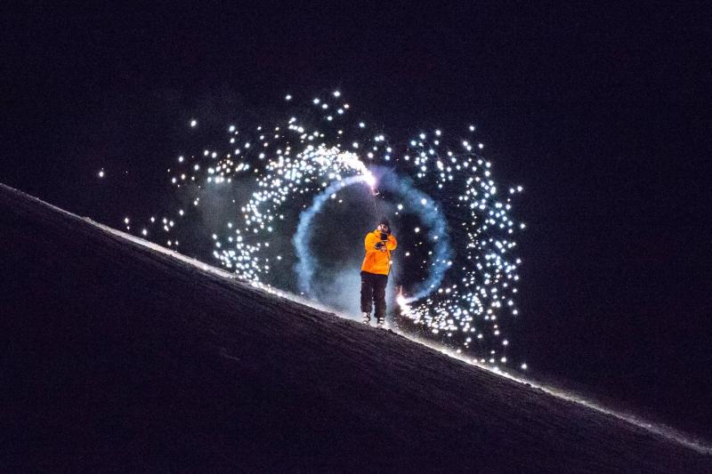 ... cala il silenzio e nel buio della sera, tutti con lo sguardo sulla pista ad ammirare i maestri esibirsi in coreografie, incroci incredibili, serpentine ritmiche...sono tantissimi i maestri che danzano sulla neve illuminati solo dalla calda luce delle fiaccole.