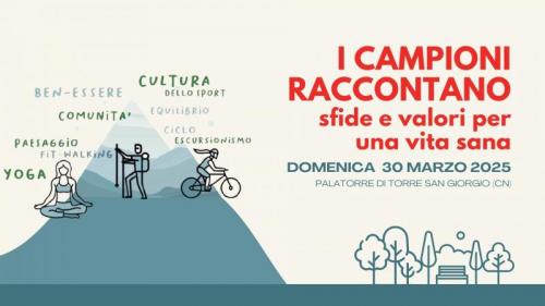 Domenica 30 marzo 2025, dalle ore 17.00 alle ore 19.00, presso il PalaTorre di Torre San Giorgio (CN), si terrà l’evento “I CAMPIONI RACCONTANO: sfide e valori per una vita sana”, organizzato dall’Associazione Octavia, che opera nei comuni facenti parte delle Terre di Mezzo (Cardé, Casalgrasso, Faule, Lagnasco, Manta, Monasterolo di Savigliano, Moretta, Murello, Polonghera, Revello, Ruffia, Scarnafigi, Torre San Giorgio, Villanova Solaro, Vottignasco e Villafalletto).