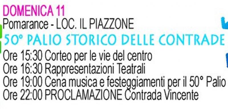 Il 50° Palio delle Contrade di Pomarance si svolge domenica 11 settembre 2022, preceduta domenica 4 settembre dall'investitura dei capitani.
