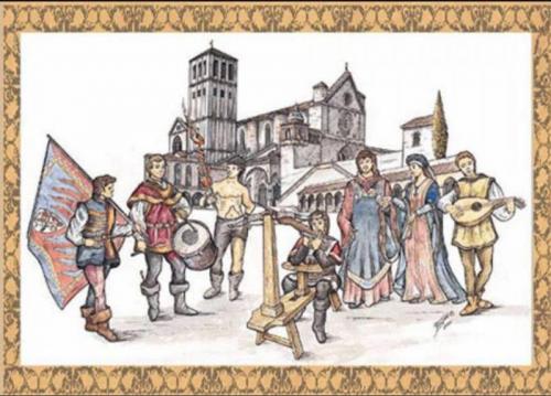 Nel 1112 esistevano truppe cittadine di Balestrieri. Il cittadino soldato, al suono a stormo della Campana della torre del popolo, doveva essere armato in un punto prestabilito che normalmente coincideva con le ampie aree prossime alle cinque porte, e l'attendere ordini. In una particella degli statuti dell'anno 1319 si trova scritto: "stabiliamo che nessuno osi con qualche arco o balestra saetta re nella piazza S. Francesco". Dai documenti presso l'archivio di S. Rufino il 6 marzo 1532 venne regolarmente istituita una Compagnia di Balestrieri col nome ufficiale di LUDUS BALISTRAE.