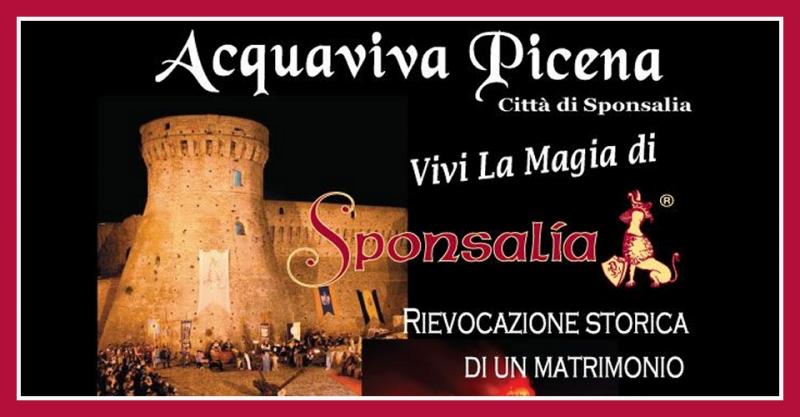 all'interno della Fortezza di Acquaviva Picena si terrà l' Evento Rievocativo SPONSALIA, Matrimonio di Forasteria degli Acquaviva e Rainaldo dei Brunforte e a seguire Banchetto Nuziale Medievale.