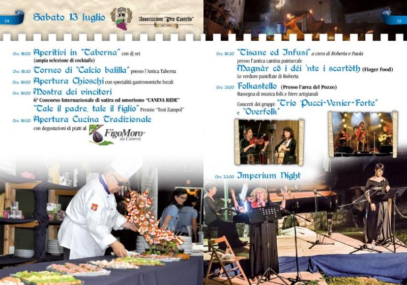 Il prossimo 13 luglio il Castello di Caneva (PN) rivive i fasti del passato con: Apriremo con gli aperitivi in "Taberna" a seguire apertura delle cucine con i piatti del "Figo Moro Di Caneva", torneo di CALCIO BALILLA, sara aperta la mostra die vincitori del concorso " Caneva Ride", inizierà il "FOLKASTELLO" con due gruppi e per finire ma non per ultimo la serata "IMPERIUM NIGHT" con DJ set.
