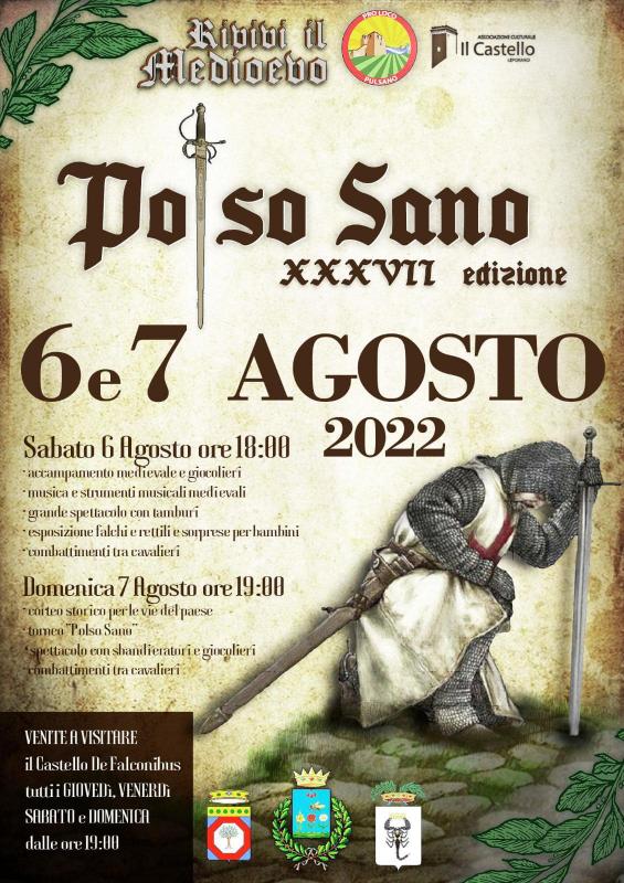 Polso Sano 6 e 7 Agosto 2022 a Pulsano Giunto alla XXXVII edizione, il Castello del Falconibus si appresta ad ospitare l'edizione del 2022 in un'atmosfera sensazionale, ricca di musica, spettacoli e gare avvincenti.