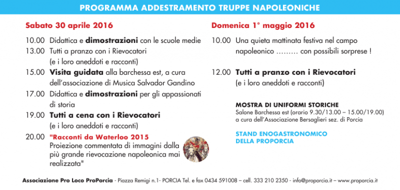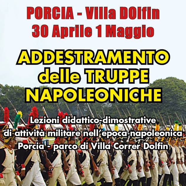 Rievocazione della Battaglia Napoleonica. Da Sabato 30 aprile a Domenica 1 maggio a Porcia, Parco di Villa Correr Dolfin, si terrà l'ADDESTRAMENTO DI TRUPPE NAPOLEONICHE: