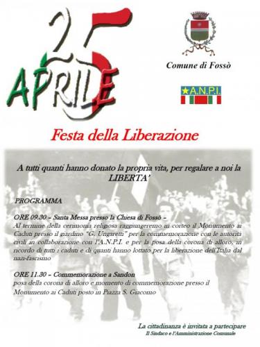 Celebrazioni del 25 Aprile - Festa Della Liberazione a Fossò: