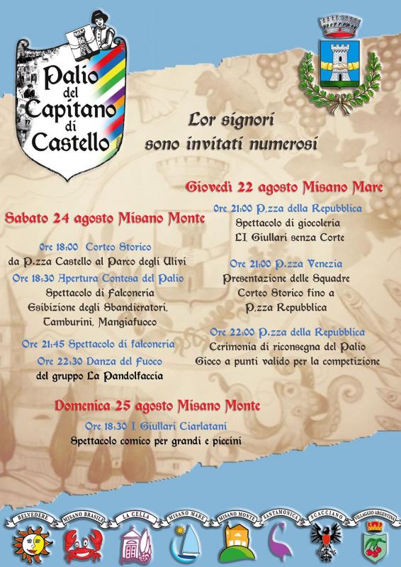 L'8^ edizione del Palio del Capitano di Castello si terrà sabato 24 agosto presso il Campo Sportivo di Misano Monte (via saffi) a Misano Adriatico (RN)