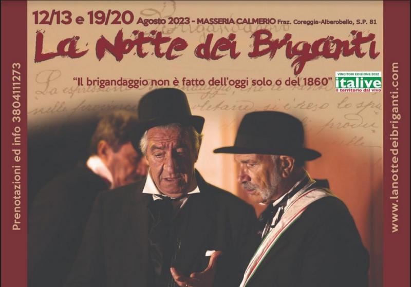 della XVII edizione de La Notte dei Briganti Alberobello, Andrà in scena nei giorni di sabato 12 e domenica 13 agosto, con replica il