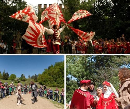 Domenica 2 giugno, dame, cavalieri e nobili giunti da terre vicine e lontane arrivano al castello per partecipare allo Sposalizio a Corte, con un programma che prevede innanzitutto la visita delle sale della rocca, teatro di quadri viventi in cui Pietrone e Rosania si preparano per il fatidico sì, circondati dai rispettivi entourage in costume. Si prosegue con un percorso magico nel Parco delle Fiabe e con una fantastica avventura da cavaliere per tutti i bambini.