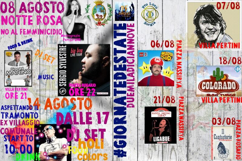 Ecco il programma estivo Pro Loco Borgia in collaborazione con il Comune di Borgia.