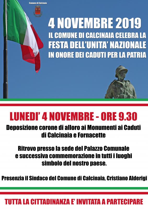 L’occasione per fare memoria di questi importanti passaggi storici e di tutti coloro che hanno perso la vita in guerre e conflitti sarà la Giornata dell’Unità Nazionale e delle Forze Armate. Lunedì 4 Novembre un corteo guidato dal Sindaco del Comune di Calcinaia, Cristiano Alderigi, dalla Giunta Comunale, da rappresentanti delle Forze dell’Ordine e da tutti i cittadini e le cittadine interessati, si snoderà per le vie del territorio.