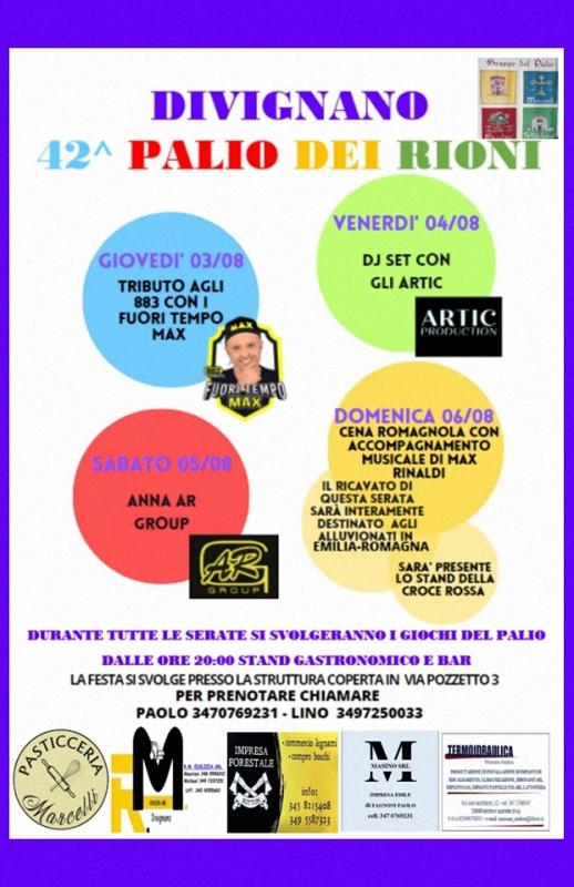 A Divignano in provincia di Novara si svolge nei giorni 03, 04, 05, 06 Agosto 2023 la 42a edizione del Palio dei Rioni.