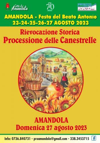 La processione rievoca ogni anno l'offerta del grano al Beato Antonio. La manifestazione è nata nel 1897 e ancora oggi è molto partecipata, al punto di essere l’appuntamento religioso e di tradizione popolare più atteso dagli amandolesi, con una gran partecipazione di cittadini dei paesi circostanti e dei tanti turisti che nel periodo soggiornano nel territorio dei Sibillini. La festa del Beato Antonio di Amandola è molto sentita nel suo aspetto spirituale e sempre ricca di spettacoli.