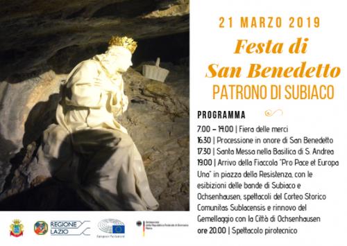 La Fiera "Terra di San Benedetto" si terrà il 21 marzo, giorno di San Benedetto Patrono di Subiaco, in concomitanza con la tradizionale fiera di merci, in Via degli opifici, creando così un vero e proprio comparto dedicato alla produzione e all'artigianato locale.