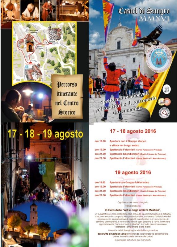 Castel di Sangro, con le sue tradizioni di città medievale propone anche per l’Agosto 2016 Arti e Mestieri, un evento in cui le antiche tradizioni artigiane, artistiche e gastronomiche faranno da cornice a varie rievocazioni come combattimenti medievali, sbandieratori, giochi antichi, spettacoli di danza e musica.