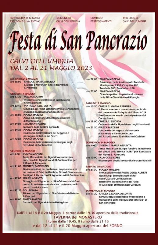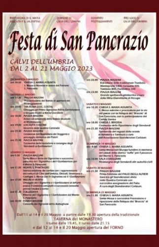 Gli eventi per la Festa di San Pancrazio Patrono di Calvi dell'Umbria si svolgono dal 02 al 21 Maggio 2023.