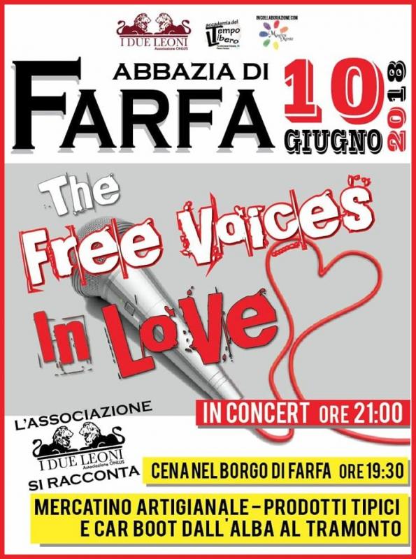 Vi aspettiamo per festeggiare con noi ad un anno dalla nascita della nostra associazione "I Due Leoni onlus". Allietera' la serata il coro "The free voce in love" diretto da Elsa Baldini. Passeggiando nel meraviglioso borgo dell'Abbazia di Farfa troverete il nostro Mercatino di prodotti a km0 e d'artigianato inoltre sarà presente anche il Car boot sabino.