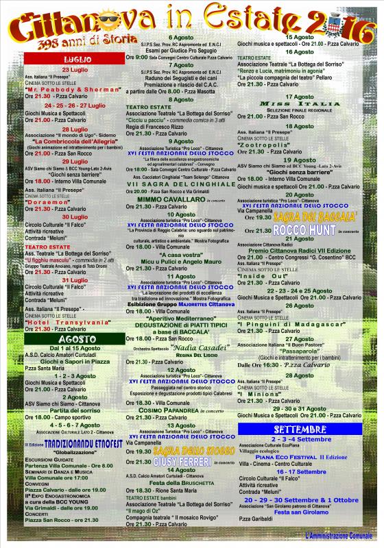 L'Estate a Cittanova mette in calendario manifestazioni dal 23 luglio all'1 ottobre 2016.