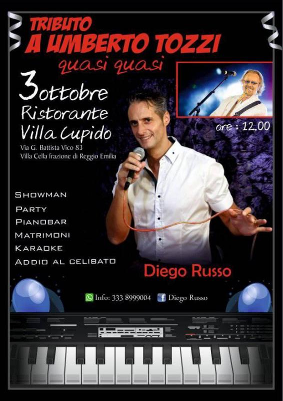 Sara Diego Rossi il protagonista del Tributo a Umberto Tozzi che si svolgera al Ristorante Villa Cupido di Villa Cella (Reggio Emilia) il 3 ottobre Ore 12:00