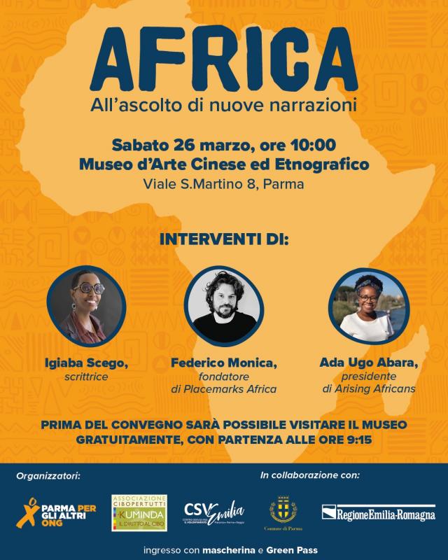 Tornano gli appuntamenti dal vivo dedicati al continente africano. Sabato 26 marzo 2022 si terrà l’incontro “Africa: all’ascolto di nuove generazioni” promosso dall’Associazione Parma Per gli Altri insieme alla rete Cibopertutti e CSV Emilia, per approfondire i racconti intorno alla cultura e al patrimonio dei paesi africani. Un viaggio alla scoperta del ruolo che riveste lo sguardo umano nella costruzione delle relazioni per la cooperazione fra paesi: cosa vediamo, cosa vogliamo vedere, cosa ci hanno insegnato a vedere, cosa evochiamo quando raccontiamo di altri popoli e territori.