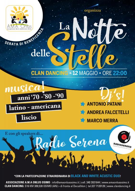 Sabato 12 Maggio 2018 dalle ore 22.00 si terrà una serata di beneficenza al Clan Dancing di Osimo con musica anni '70, '80, '90, latino americana e liscio.