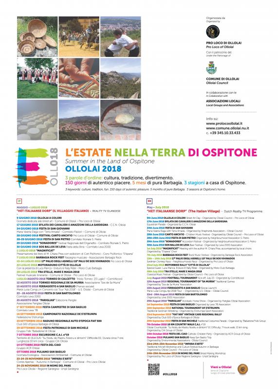 "L'Estate nella Terra di Ospitone - Ollolai 2018" vuole raggruppare in un solo calendario le numerose manifestazioni che si svolgeranno a Ollolai da Giugno a Novembre.