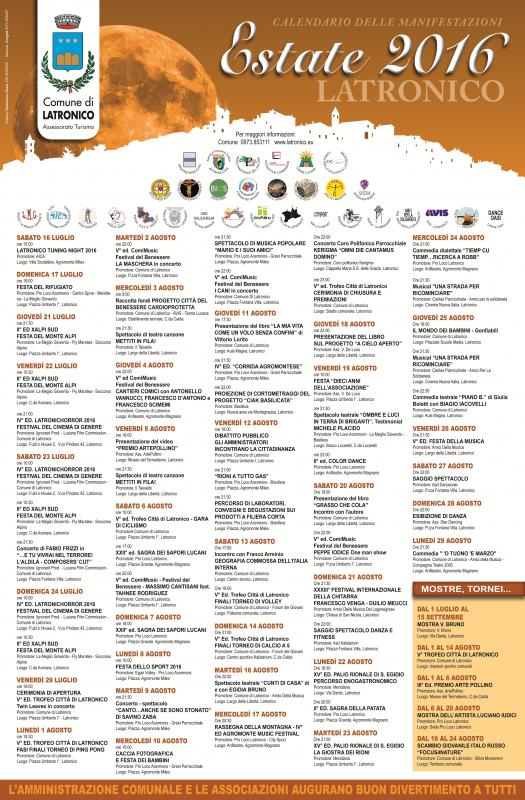Estate a Latronico, il calendario delle manifestazioni estive 2016 prevede eventi da metà luglio a fine agosto 2016.