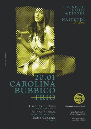 Carolina Bubbico, pianista, cantante, compositrice, arrangiatrice attiva sulla scena musicale dal 2011 quando esordisce con l’originale progetto in solo “One girl band” che la vede impegnata nell’uso di più strumenti musicali, una loop machine, le percussioni oltre alla voce e al pianoforte.