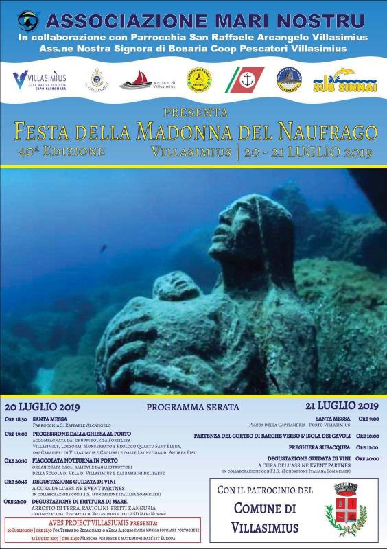 Festa della Madonna del Naufrago. Il terzo weekend di luglio, per ricordare i marinai sfortunati dispersi nella zona di Capo Carbonara e invocare la protezione su quanti vanno per mare, si festeggia la statua della Madonna con una speciale messa al Porto. Il giorno dopo una suggestiva processione di barche ricoperte di fiori si reca all’Isola dei Cavoli, dove nel 1979 una statua della Vergine è stata deposta sul fondo del mare a protezione dei naviganti.