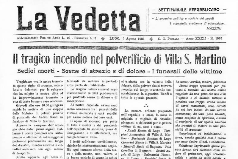 Successivamente vi sarà una suggestiva evocazione del grave incidente occorso al polverificio il 6 agosto 1925, in cui perirono 16 persone di cui 15 giovani donne; Paolo Gagliardi racconterà come è venuto a conoscenza di fatti ormai dimenticati da gran parte della cittadinanza lughese e sarà proiettato un video di alcune testimonianze tramandate da persone che ne vennero a conoscenza, o da discendenti delle vittime.