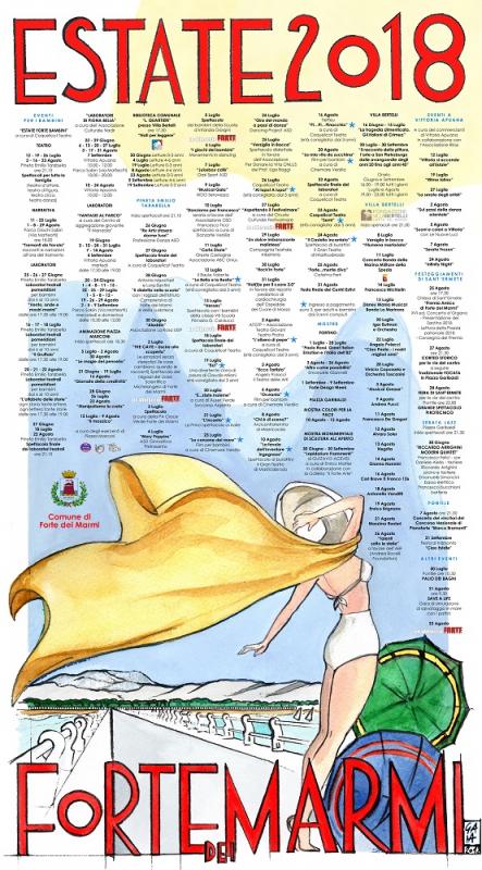 Un cartellone ricco di novità ed eventi per Forte dei Marmi. L'estate 2018 vede l'Amministrazione Comunale puntare su un maggior numero di eventi culturali ed artistici, con la novità dell'anticipazione a luglio del Premio Satira in una nuova formula di quattro giorni di appuntamenti.