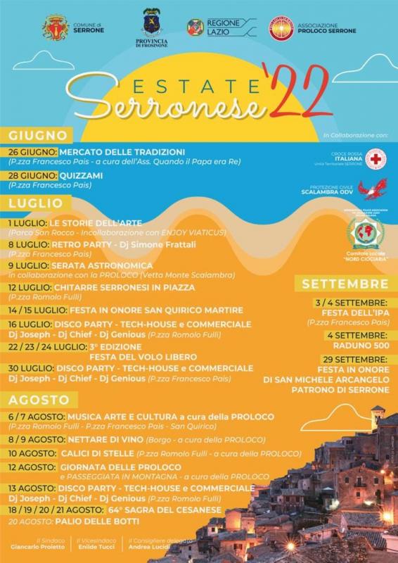 L'Estate Serronese 2022 porta eventi a Serrone dal 23 luglio fino al 29 settembre 2022