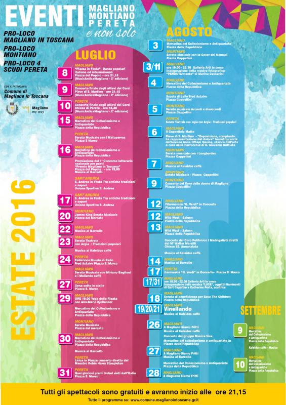 L'Estate A Magliano In Toscana è carica di eventi gratuiti dall'8 luglio al 10 settembre 2016.