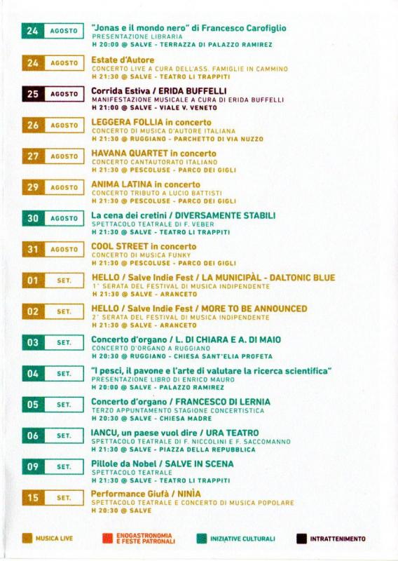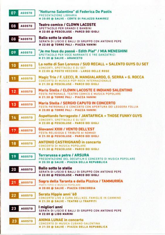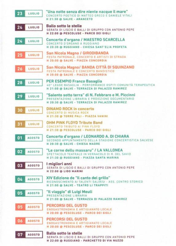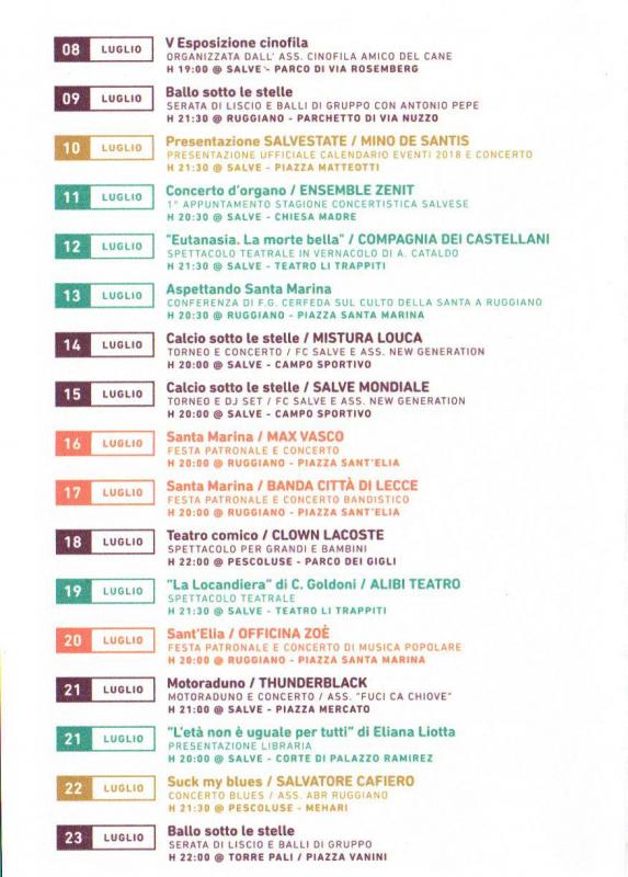 SalvEstate, gli eventi a Salve per l'estate 2018 vanno dal 08 Luglio al 15 Settembre.