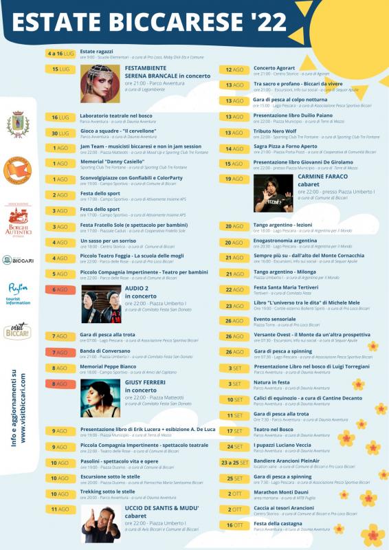 Estate Biccarese 2022: eventi dal 24 luglio al 29 settembre 2022