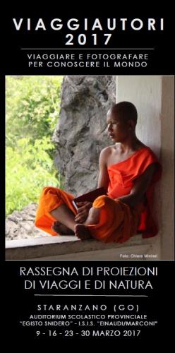 Giovedì 23 marzo 2017: serata di multivisioni a cura dell’associazione Merlino Multivisioni di Trieste, comprendente i seguenti lavori: COLORI IN FESTA di Giorgio Pavan e Rosa Maria Salvi - Più di cento tribù, provenienti da tutta la Papua Nuova Guinea, si riuniscono per mostrare con orgoglio le caratteristiche delle loro culture; PREGHIERE NEL VENTO di Merlino Multivisioni - Ladakh e Zanskar rappresentano ancora un autentico angolo di Tibet rimasto, per ragioni politiche, in territorio indiano; NEL MARE LE MONTAGNE di Roberto Valenti - Reportage tratto da un’esperienza artica della Scuola di scialpinismo “Città di Trieste”, tra i fiordi del Nord della Norvegia; NELA PROSSIMA VITA di Ervin Skalamera e Franco Toso - Una serie di immagini sognanti rincorrono i versi e le note della struggente canzone di Massimiliano Cernecca interpretata dalla voce di Giuly Rosso; UCCEL DI BOSCO di Ervin Skalamera e Giorgio Cividal - La storia del picchio Livio e della sua famigliola;