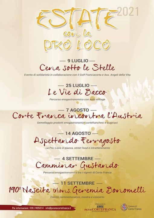 Diniego di responsabilià: le notizie riportate in questa pagina sono state fornite da Enti Pubblici e Privati e, organizzazione eventi e sagre, fiere. Suggeriamo di verificare date, orari e programmi che potrebbero variare, contattando le organizzazioni o visitando il sito ufficiale dell'evento.
