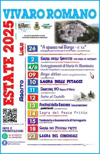 L’estate 2025, a cura del Comitato Festeggiamenti e della ProLoco, prevede diversi appuntamenti di carattere gastronomico, musicale e religioso