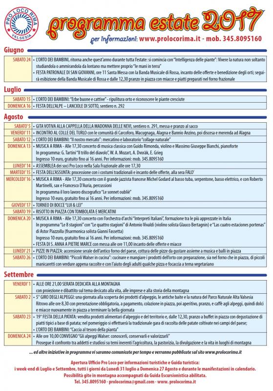 Ritrovo alle ore 8,30 con prenotazione obbligatoria, a pagamento, colazione in piazza, poi aperitivo, pranzo, e caffè agli alpeggi, quindi dolci e miacce nuovamente in piazza a terminare la bella giornata