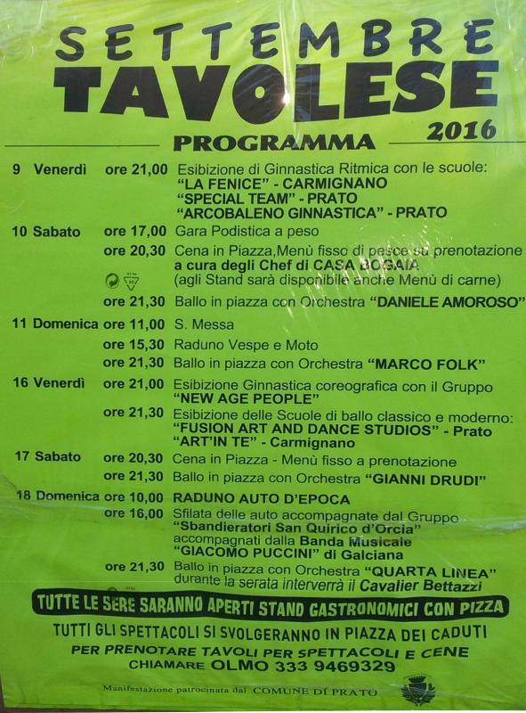 Il Settembre Tavolese porta tantissimi eventi dal 9 al 18 settembre 2016 a Tavola di Prato.