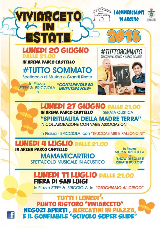 ViviArceto in Estate 2016 tutti i Lunedì dal 20 Giugno all'11 Luglio 2016 nel centro del paese di Arceto di Scandiano (RE).