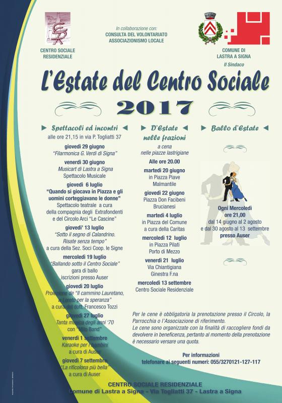 L'Estate del Centro Sociale 2017: eventi estivi da giugno a settembre.