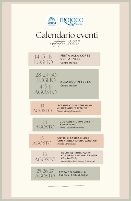 Di seguito alcuni eventi e manifestazioni ricorrenti che si svolgono nel Comune di Gradoli: