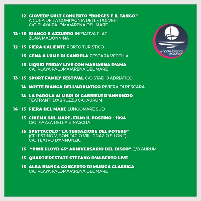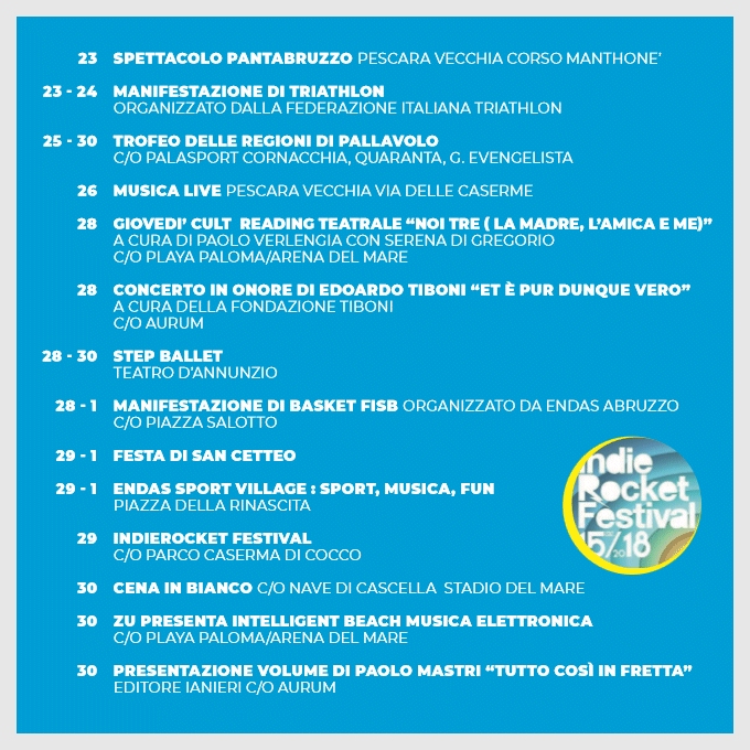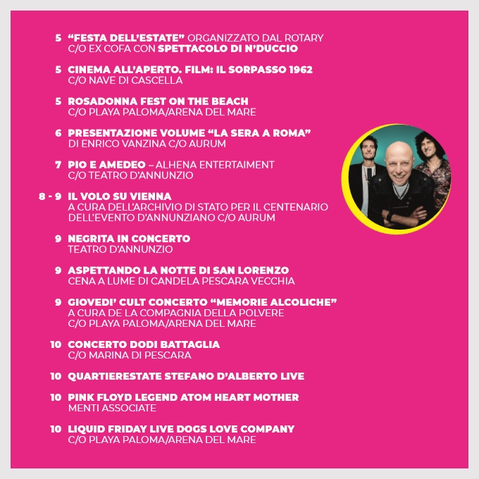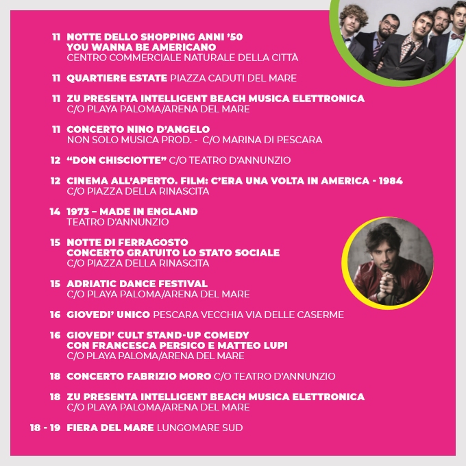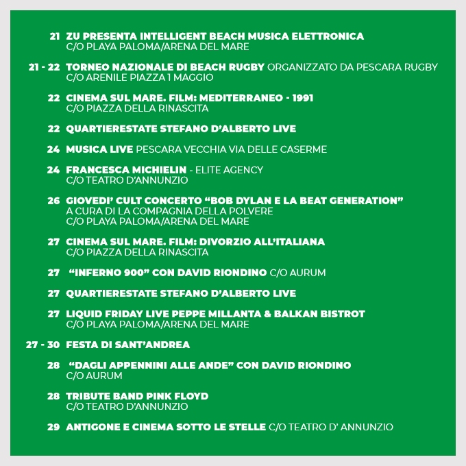 E' stato presentato il cartellone degli appuntamenti estivi a Pescara. Al momento sono 180 con concerti che partono già da questo week-end.
