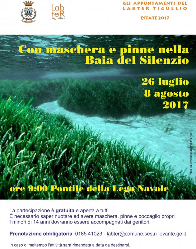 Un’attività che il LabTer Tigullio propone ormai da anni a scuole e cittadini nella convinzione che sia importante “toccare con mano” per insegnare una corretta fruizione e tutela di un habitat così importante e fragile come quello delle praterie di Posidonia oceanica, soprattutto quando sono in un contesto privilegiato e molto frequentato come la Baia del Silenzio.