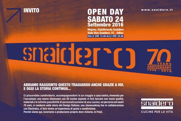 Aprire le porte della propria azienda è per Snaidero un’importante occasione per condividere il proprio patrimonio con tutto il territorio, con le persone che collaborano in azienda ma anche con quelle che conoscono Snaidero, ma che non hanno mai avuto la possibilità di visitare questa azienda, tutti coloro che, in sintesi, avranno il piacere di partecipare alla giornata.