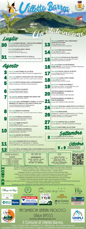 Diniego di responsabilià: le notizie riportate in questa pagina sono state fornite da Enti Pubblici e Privati e, organizzazione eventi e sagre, fiere. Suggeriamo di verificare date, orari e programmi che potrebbero variare, contattando le organizzazioni o visitando il sito ufficiale dell'evento.