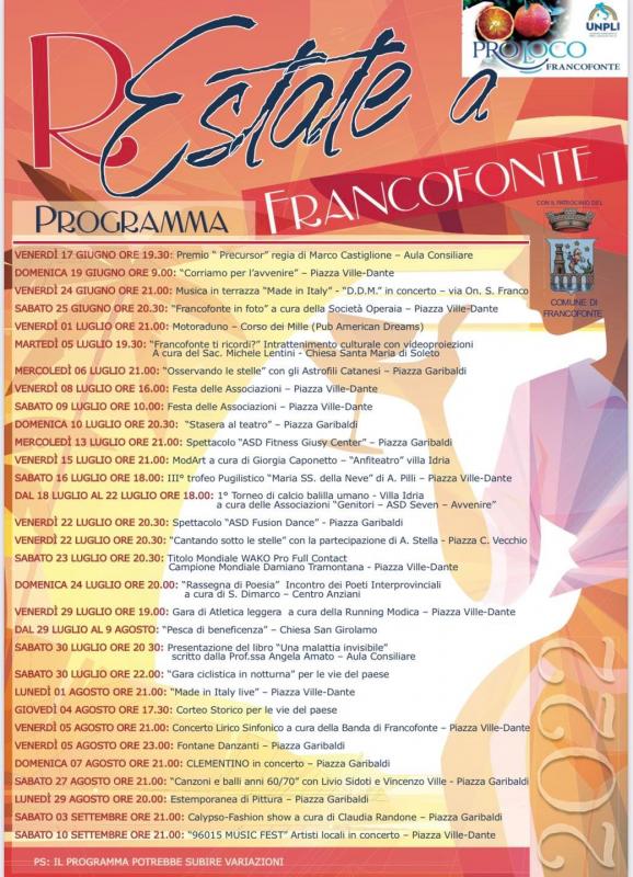 LUNEDÌ 29 AGOSTO ORE 20.00: Estemporanea di Pittura - Piazza Garibaldi SABATO 03 SEI I tMBRE ORE 21.00: Calypso-Fashion show a cura di Claudia Randone - Piazza Garibaldi