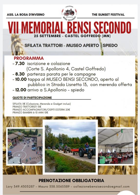25 Settembre 2022 settimo raduno trattori d'epoca "Memorial Bensì Secondo". consueta sfilata per le vie del paese, visita al museo Collezione Bensì e pranzo a S.Apollonio.