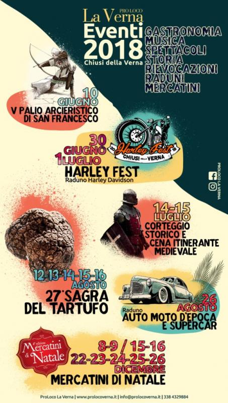 Anche quest'anno a Chiusi della Verna le manifestazioni non mancano e la Pro Loco ha realizzato il seguente calendario eventi: